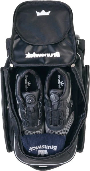 The Brunswick Charger Double Roller introduces an all new innovative padded base design. The Charger Double Roller features a unique sleek handle system, extra-large wheels for stability and dual side pockets to carry all of your accessories. The top pocket holds up to size 12 men’s bowling shoes plus side accessory pockets on both sides for additional storage.